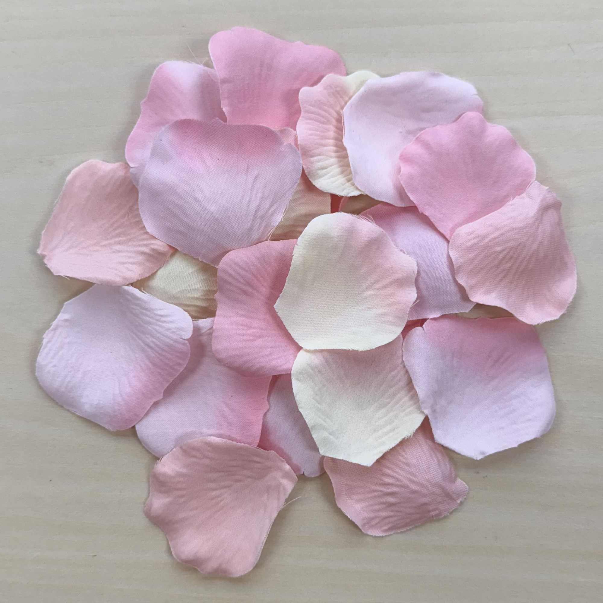 A mixture of 1900 rose petals in shades of light pink, fully separated and ready to use (no need to pull apart one by one).