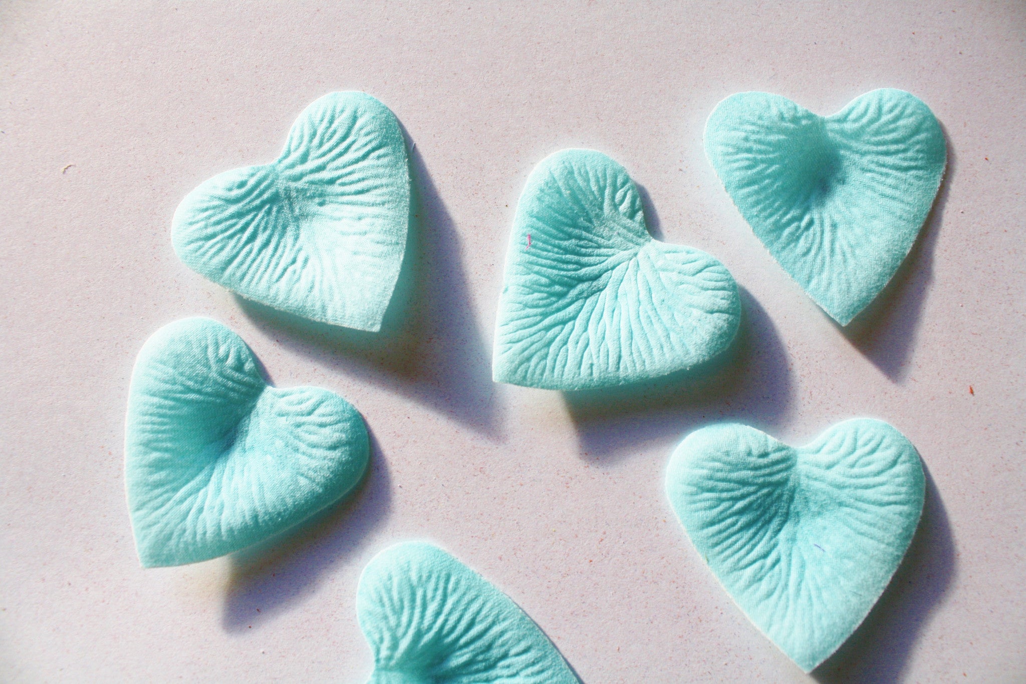 Great for Valentine's Day! Our silk heart-shaped petals are made from a high quality micropeach polyester fabric to give them a soft, fuzzy feel. They measure about 1 3/4" in diameter.