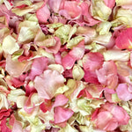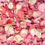 Decorating your wedding aisle with rose petals? Our special blend of shades of Pink Pathway Petals are just what you need. During both the "petaling" and packing processes, we carefully sort out the petals that have imperfections. The petals could have small rips or cracks in them, or color variation from the freeze drying process. In addition to small inner petals and greenish guard petals, these make up what we call Pathway Petals. While we don't recommend them for table decoration, they are ideal for aisles, where you need a lot of petals. Each bag contains 70 cups of rose petals.